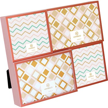15391 :: PORTA-RETRATOS HOME&CO VERSALIUS 4 FOTOS ALUMÍNIO 27x21x4cm ROSA