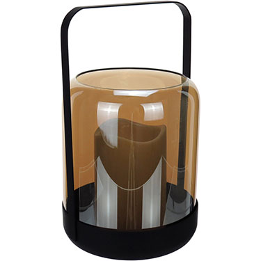 19821 :: LANTERNA HOME&CO COM VELA DE LED METAL E VIDRO 24x15x15cm ÂMBAR