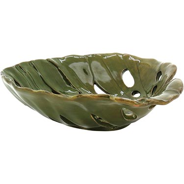 12536 :: ADORNO PARREIRAL FOLHA CERÂMICA 8x26x25cm VERDE