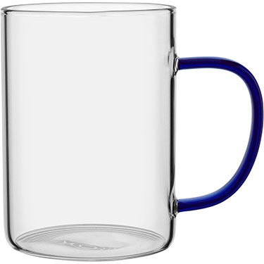 18826 :: CANECA ALÇA AZUL BOROSSILICATO 450ml 12x8x8cm TRANSPARENTE