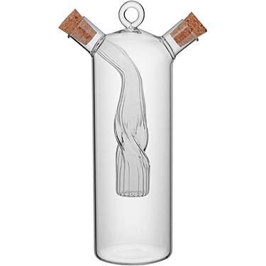 11718 :: GALHETEIRO AZEITE / VINAGRE SAUCE 2 EM 1 BOROSSILICATO 350/75ml 15x14x10cm TRANSPARENTE