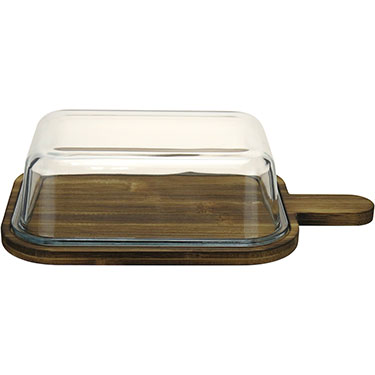 20101 :: QUEIJEIRA RETANGULAR HOME&CO COM TAMPA DE VIDRO MADEIRA 7x31x18cm NATURAL