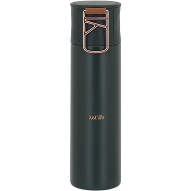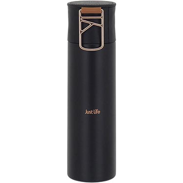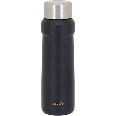 17936 :: GARRAFA TÉRMICA JUST LIFE PAREDE DUPLA INOX 500ml 23x7x7cm PRETO