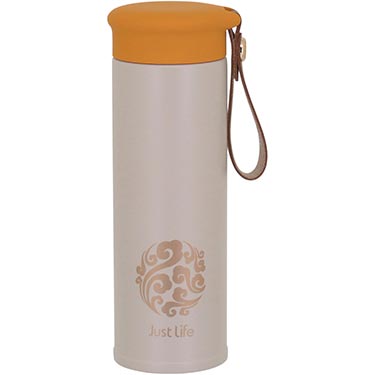 17934 :: GARRAFA TÉRMICA JUST LIFE PAREDE DUPLA INOX 450ml 20x6x6cm BEGE