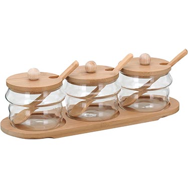 17800 :: JG 3PÇS PORTA CONDIMENTO TABLE COM SUPORTE BOROSSILICATO TRANSPARENTE