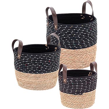 17846 :: JG 3PÇS CESTA JIBARAN FIBRA PRETO
