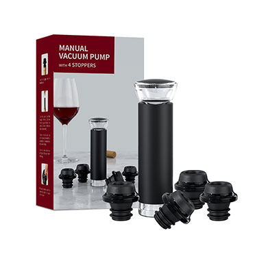 21123 :: JG 2PÇS TAMPA A VACUO VINHO HOME&CO PLÁSTICO PRETO