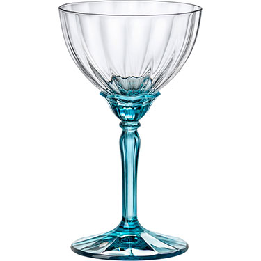 19599 :: JG 6PÇS TAÇAS COQUETEL COUPE BORMIOLI ROCCO FLORIAN PÉ AZUL VIDRO 240ml 16x9x9cm TRANSPARENTE