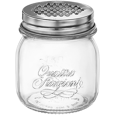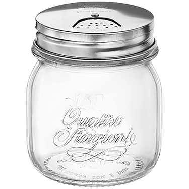 10008 :: SALEIRO/PIMENTEIRO BORMIOLI ROCCO QSTAGIONI TAMPA INOX VIDRO 250ml 9x9x9cm TRANSPARENTE
