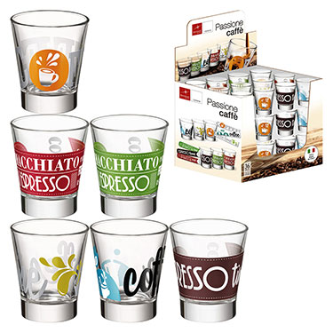 10188 :: JG 36PÇS COPO CAFÉ BORMIOLI ROCCO CAFFEINO SORTIDO VIDRO 80ml 7x6x6cm